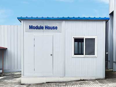 Module House, which is used with EPS insulation sandwich panel for all roof and wall. Light weight, strong, easy to assembled on the already poured foundation and can be moved easily everywhere especially suitable for temporary office (or) building. Various type of module house design can be supply.